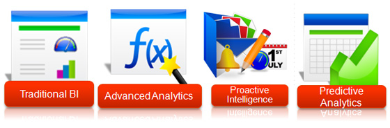 - Proactive intelligence = alerts and report scheduling/distribution/subscription that enables an enterprise to be highly proactive in uncovering issues and opportunities